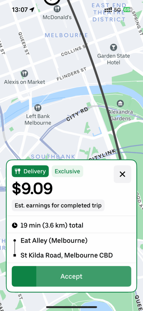 ここはフリンダース駅周辺からメルボルンセントラルまで配達をゲットできる穴場スポット